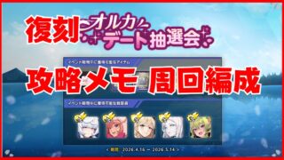 ラストオリジン【ラスオリ】復刻イベント「オルカデート抽選会」攻略メモ:周回編成 復刻イベント「オルカデート抽選会」は開催期間:2026年4月16日(木)~2026年5月14日(木) 約3年ぶりの復刻! イベントステージ自体は少なく、サブストーリーに焦点が当たったイベント 参考に前回の攻略メモのリンク... 2026.04.19ラストオリジン