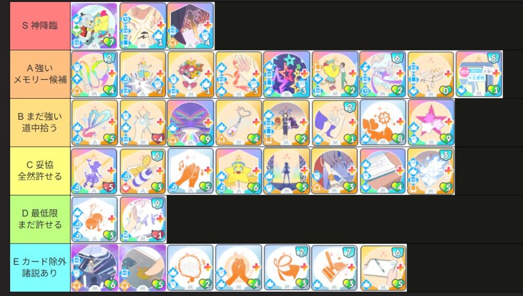 ラブリーウインク:カスタム2回必要なのでメモリー準備のハードルが高いし、道中割と拾えるのでわざわざメモリー持ち込みの意味が薄い。