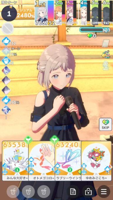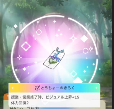 正直ラブリーウインクが引けなくても、キセキの魔法、トキメキ、手拍子、あたりの火力スキルが引ければ良し。中間試験前に確保できればカスタムして使う。