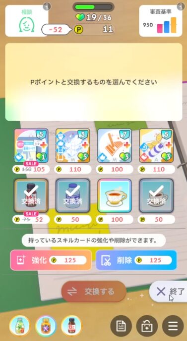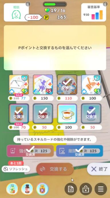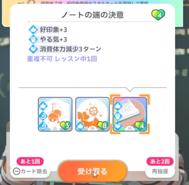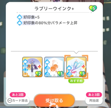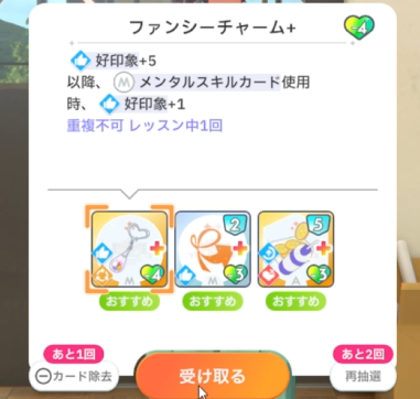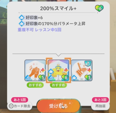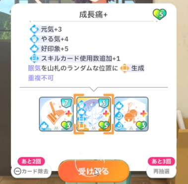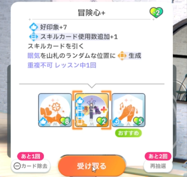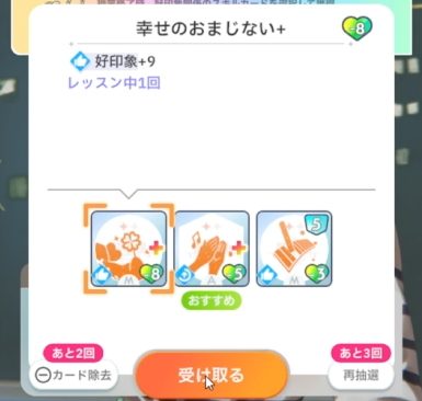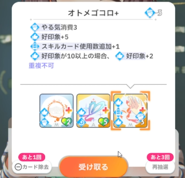 授業終了時、好印象関係のスキルカード取得(3回)