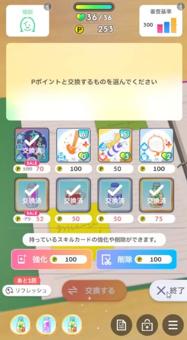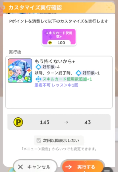 中間試験前に引いて好印象分パラメータアップカスタムを2回やる。