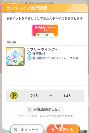ゆめみごこち:カスタムするとしたら好印象コスト-