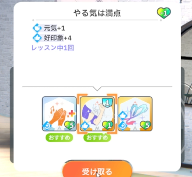 固定値でパラメータを伸ばせるため、育成アイドルのサブパラメータに該当するものを選択
