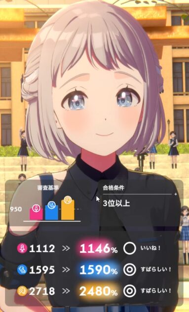 SRの「今はあえて、背を向けて」、一周回って環境に戻ってきた感ある。初期からまったり攻略勢を支えるSR。試験終了時ボーカル上昇が以前は1回だったのが2回にアッパー調整された過去を持つ。