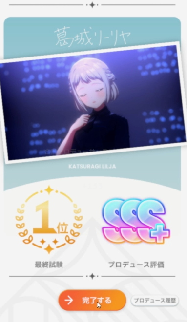 チャレンジPアイテムで最終試験時に1ターン目に好印象8稼げるので、初手レジェンドスキル「究極スマイル」を引いても事故らない。