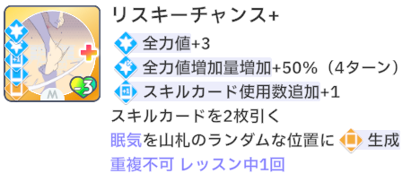 「リスキーチャンス」:全力値増加バフ+ドロー2枚+スキル使用追加