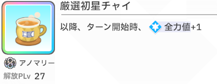厳選初星チャイ、全力値稼ぎに便利。温存2回強気2回の指針変更が完了して全力状態維持突入するときに使う