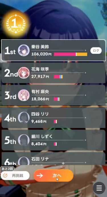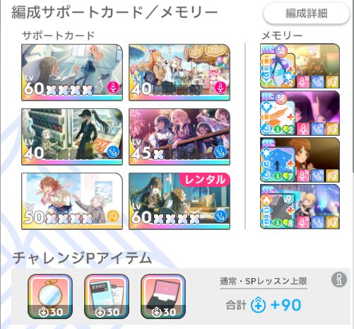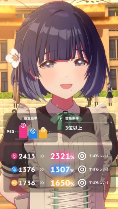 ビジュアルはチャレンジPアイテムと授業で上げる形にして、レッスンはボーカル/ダンスを伸ばすのがステータスを伸ばしやすい。