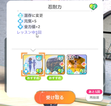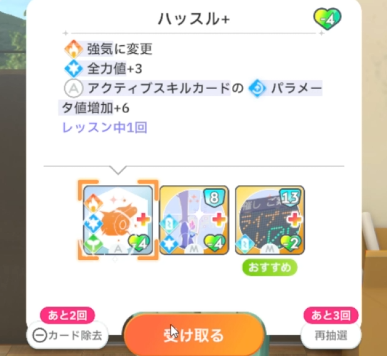 授業終了時、全力関係のスキルカード取得(3回)