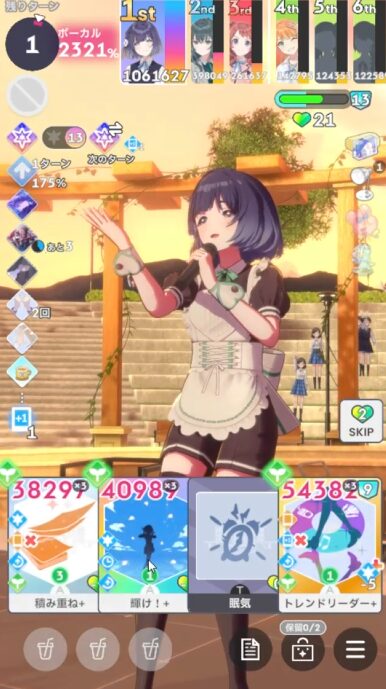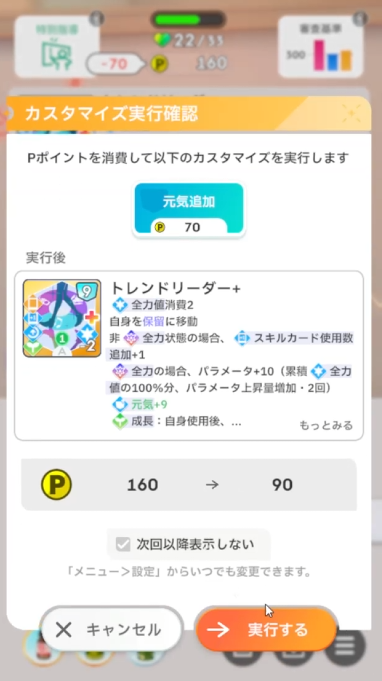 ②火力スキル強化は、「アイドルになります」が最強格。それとPLv75で解放された「本領発揮」も強い。他の強化カードは余裕が合ったら使う。