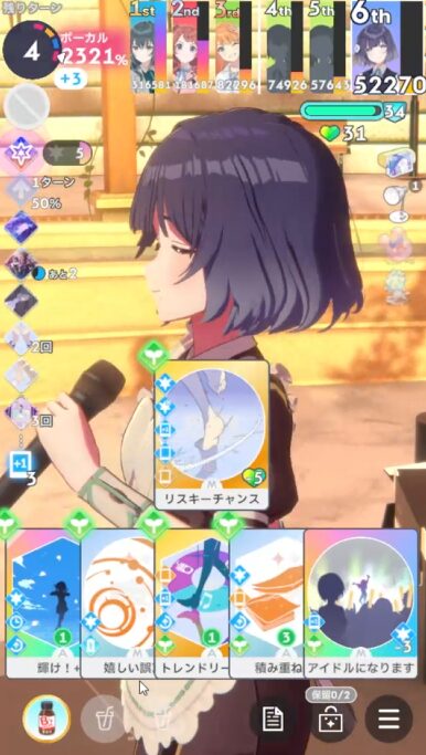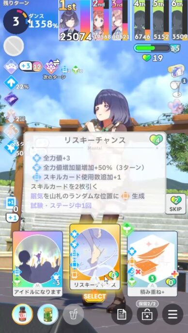 今回はリスキーチャンスとアイドルになりますを引いているので比較的スコアを伸ばしやすい。