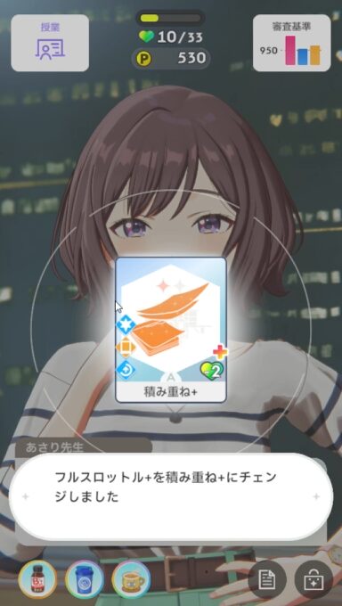 授業ではサブパラメータを上げる。トラブルカード取得は避ける。1回くらいは許容。