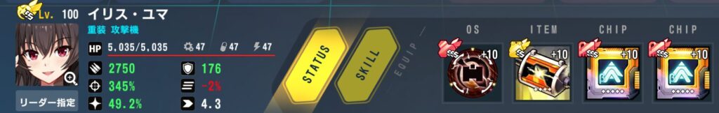 敵のデバフ込みでも高回避の敵を仕留められるようにステータス調整