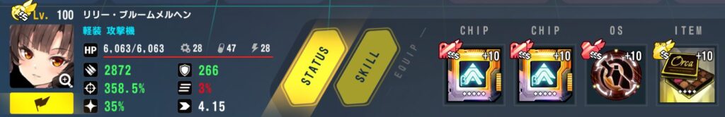 装備:出力強化回路ベータ×2、軽装型攻撃最適化システム、チョコ