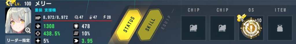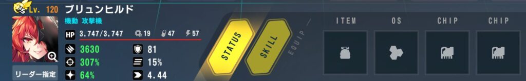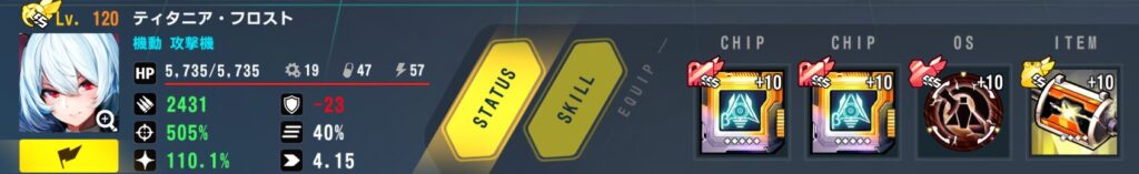 ステータス:バフ込みクリ率110%、命中率505%で残り攻撃