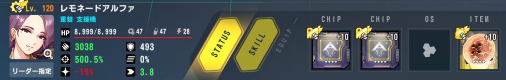 優秀な属性サポート役で雑に強い。また味方全体に偵察付与と面白スキルも持っている。