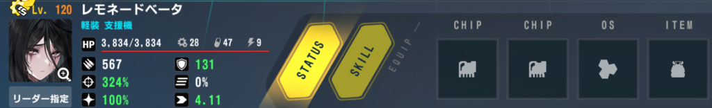 リアン:SSランク軽装支援機。主役のイベントが常設されている。