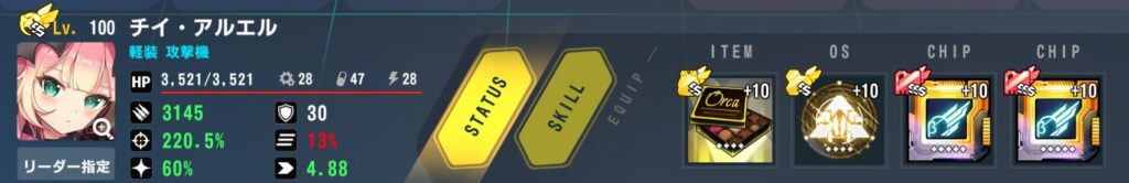 ステータス:バフ込みクリ率100%、命中率220%で残り攻撃