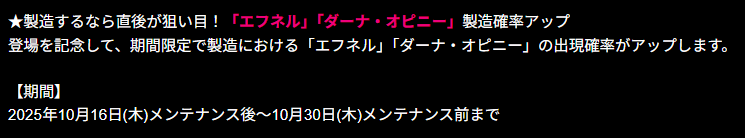 メンテ時間中の製造履歴にダーナは3人いたが…エフネルは0…