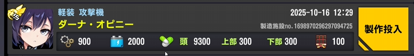 最低値レシピの2倍くらい資源入れて、軽装攻撃機の出現確率2.3倍、悪くないレシピ