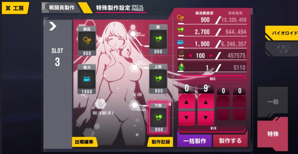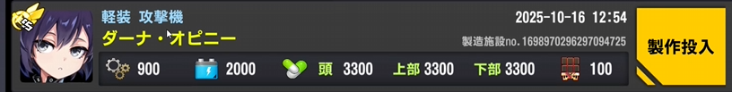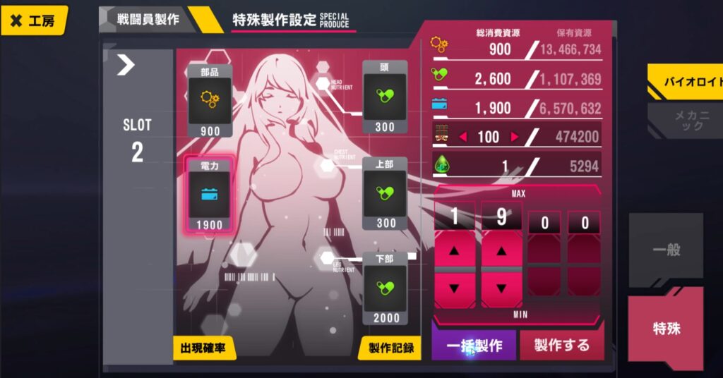 今回のアイシャ式は部品900・栄養9900・電力2000