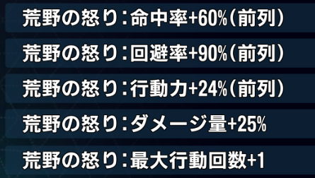 自身の命中、回避、行動力が上がる。