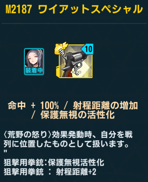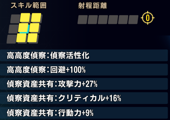 自身が偵察状態だと効果アップなのは以前からあったが…スキル調整によって戦闘開始時1wave目から偵察状態を得るようになったので、装備の自由度が上がった。