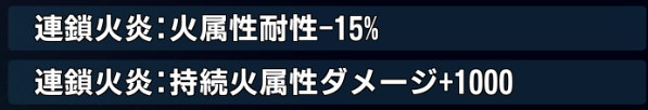 また、持続火属性ダメージ状態の敵にはダメージ量増加、という効果が追加された。