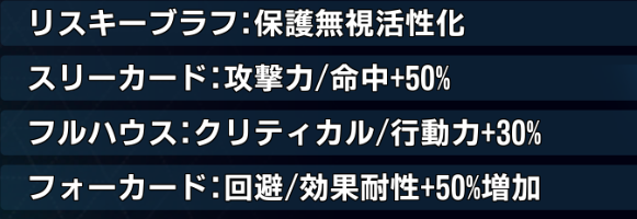 攻撃機4人・支援機1人で回避/効果耐性バフを得られる。