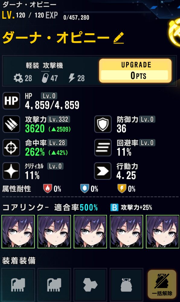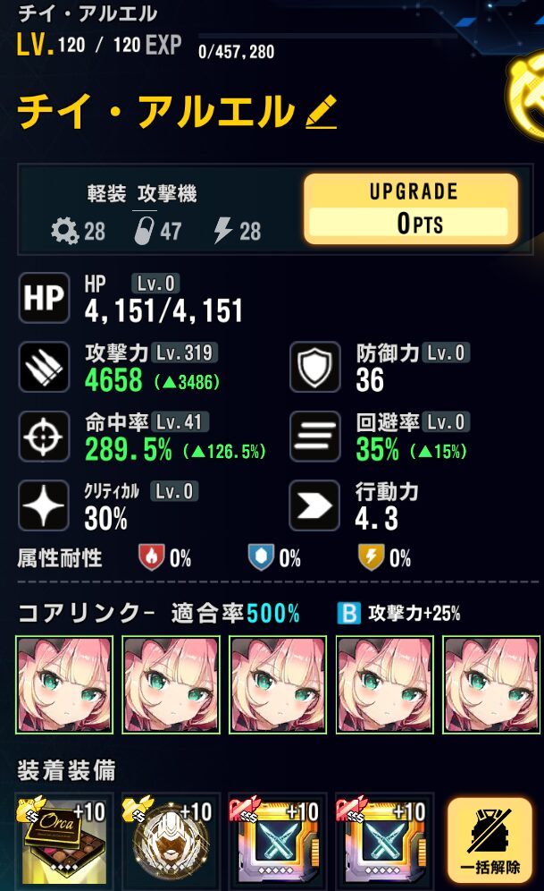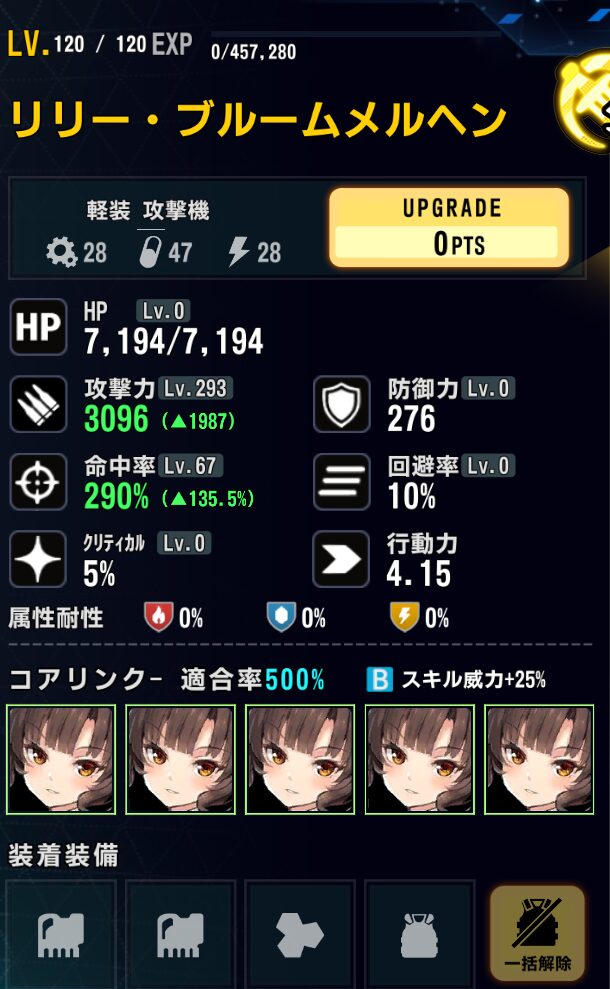ウル:SSランク重装攻撃機。こちらもついに常設ドロップステージ実装。ストライカーズ編成に拘らなくても雑に強い高火力アタッカー。高難易度ステージでは長距離狙撃モードの方が便利。