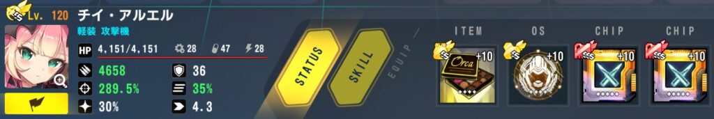 装備:BR突撃回路、掩襲型戦闘システム、チョコ