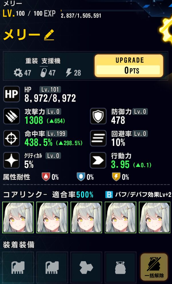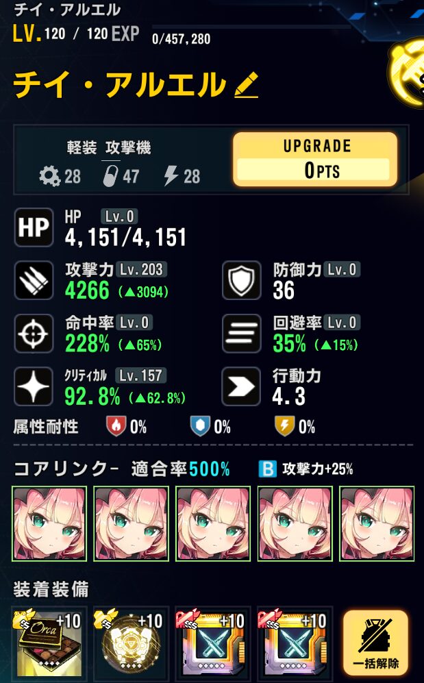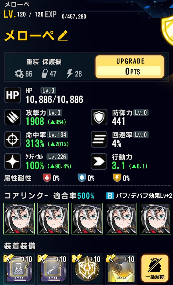 ファフニール:SSランク軽装攻撃機。ついに常設ドロップステージ実装。他の常設ステージでドロップしない。エンプレシスハウンドのメンバーの中で一番癖が少なく扱いやすいまである。優秀な電気属性アタッカー