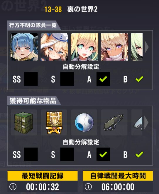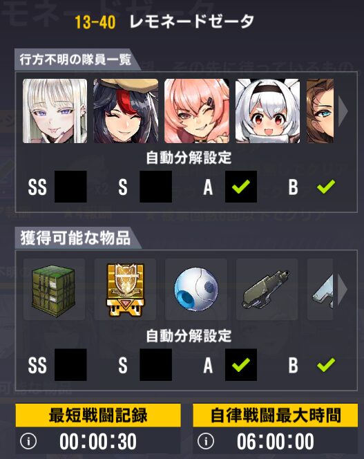 チョナ:SSランク軽装攻撃機。他の常設ステージでもドロップするが、周回しやすいステージはここ。チョナ好き。手数の多いクセつよアタッカー。