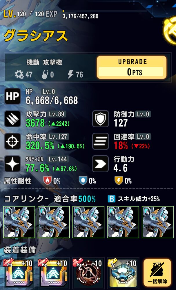 グラシアス:レベル上限拡張120、スキル②優先設定