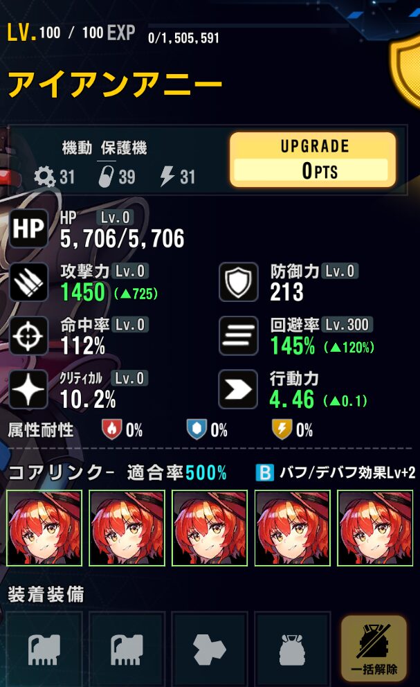 SSランクまで強化すれば防御+168、回避+28.5%