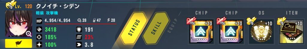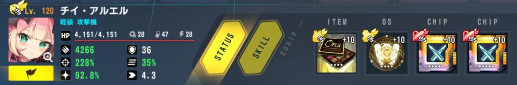 装備:出力強化回路ベータ×2、対重装型戦闘システム、チョコ