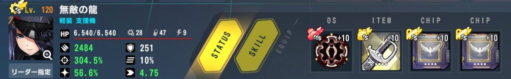 ステータス:バフ込みクリ率100%(175)、命中295%以上(50)、残り攻撃(135)