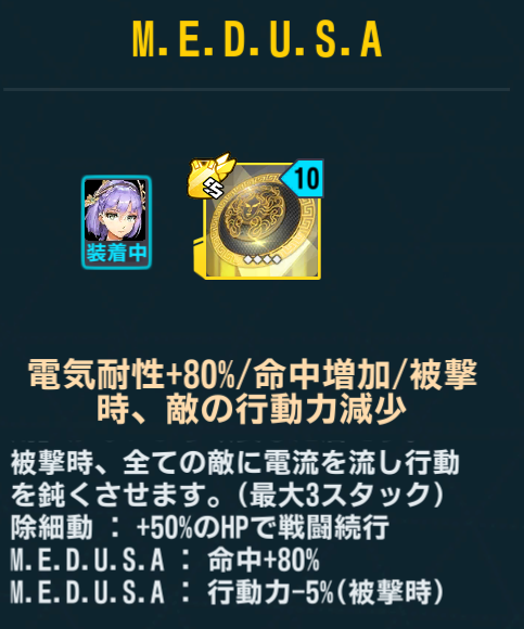 戦闘続行50%が本当に強くて、敵の行動力デバフも地味に強い。