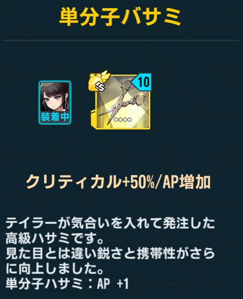テイラーの専用装備:単分子ハサミ