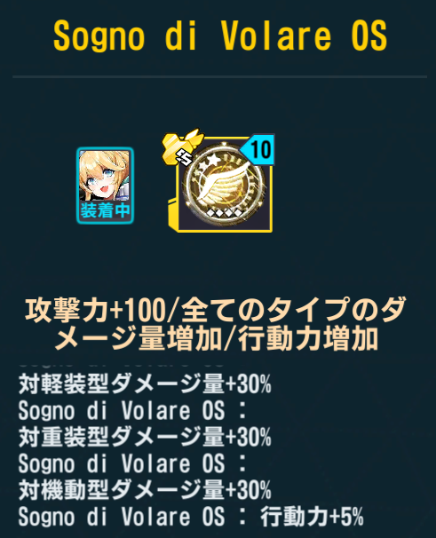 アタッカーのOS枠候補には保護無視を付与する掩襲型戦闘システムがあるけど、ハルピュイアが採用されるスカイナイツ編成においては、自前で保護無視を持つA2協同攻撃をメインに立ち回るため掩襲型戦闘システムは不要。