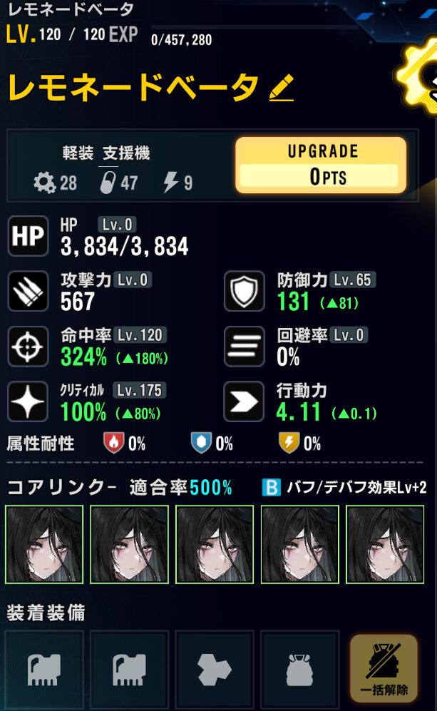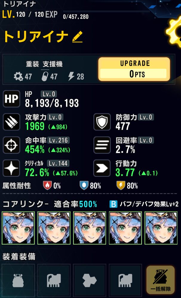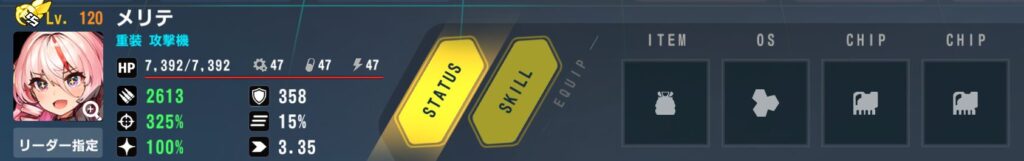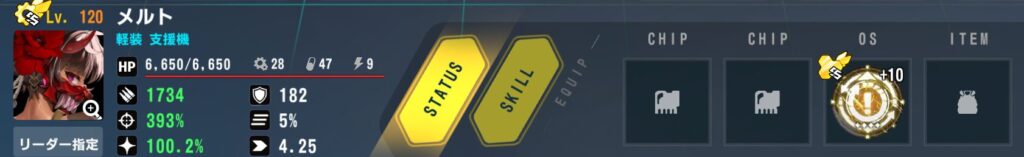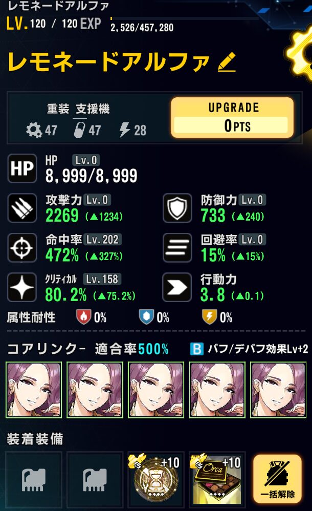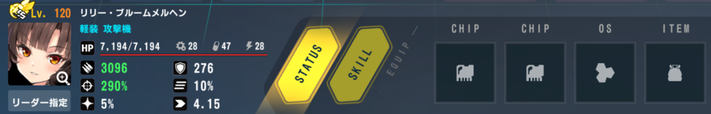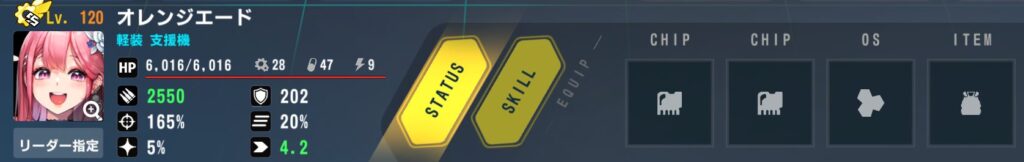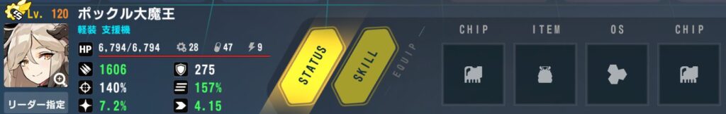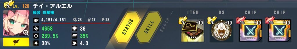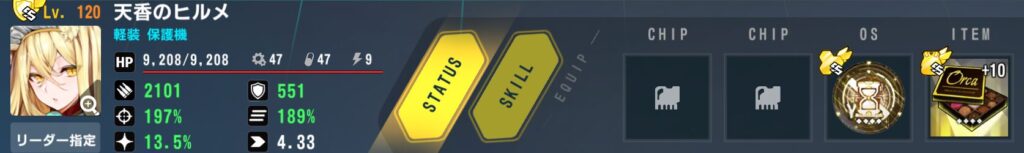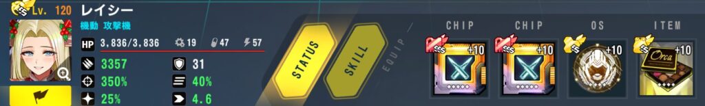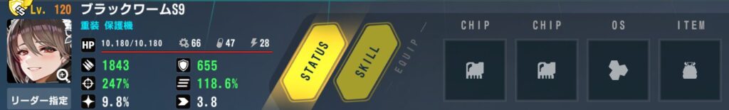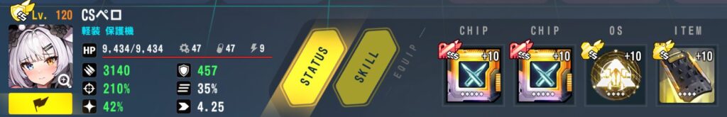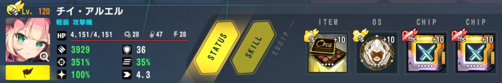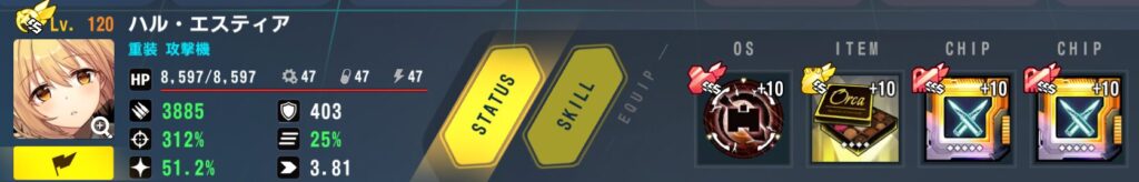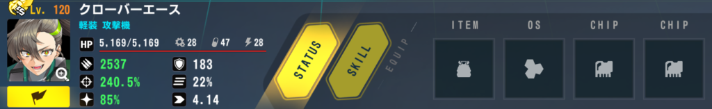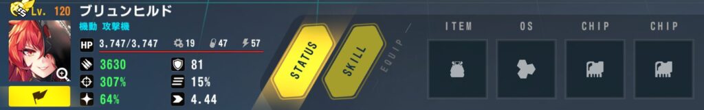 装備:BR突撃回路×2、専用装備 ステータス:攻撃特化