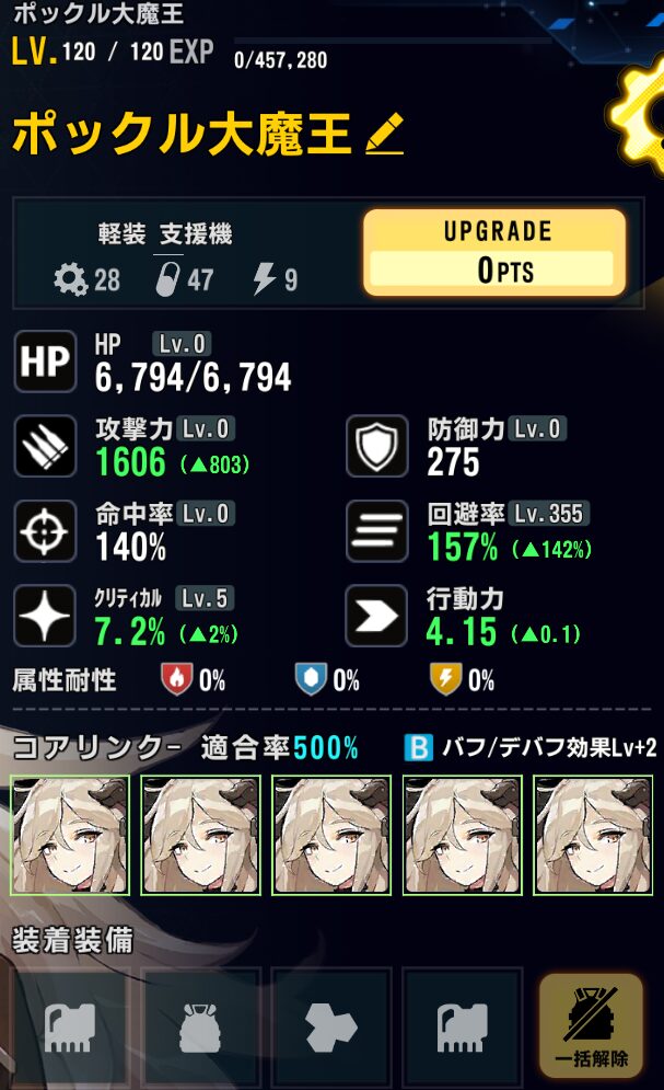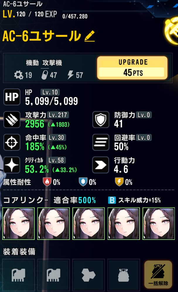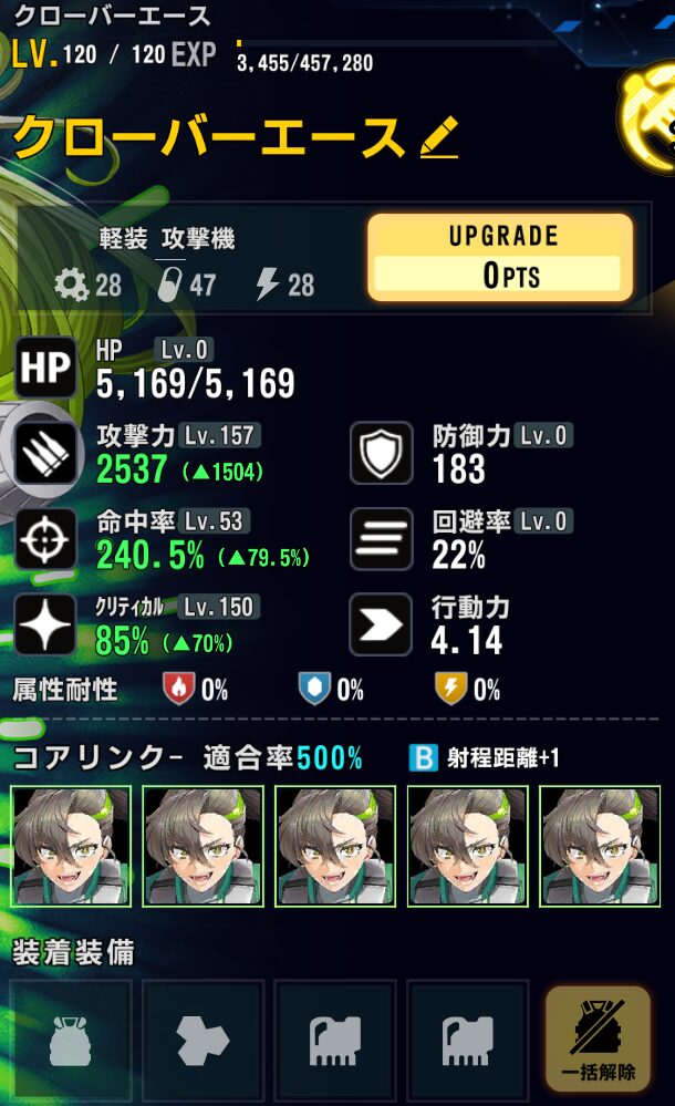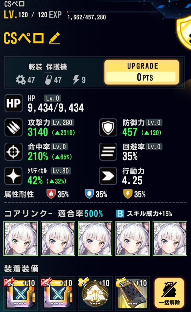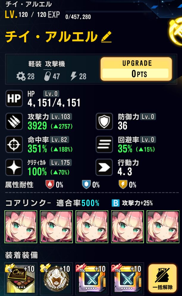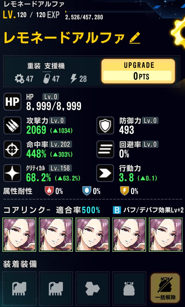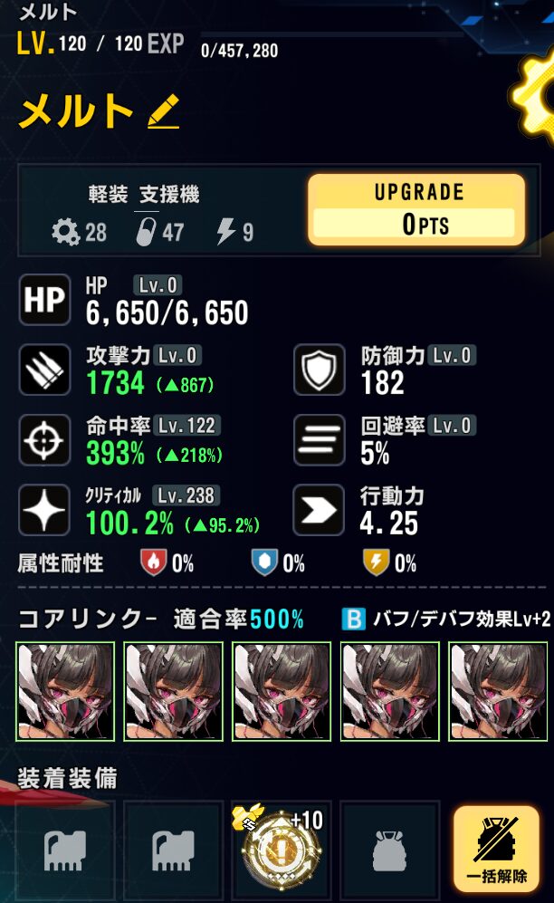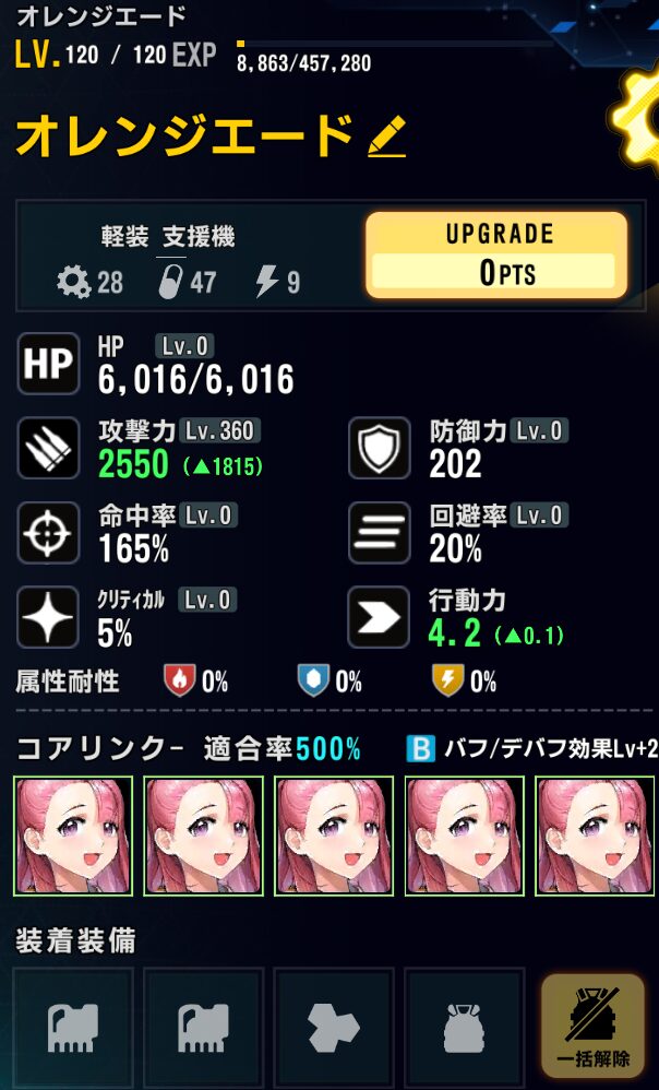 装備:BR突撃回路×2、専用装備 ステータス:攻撃特化