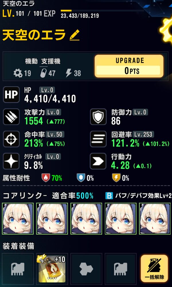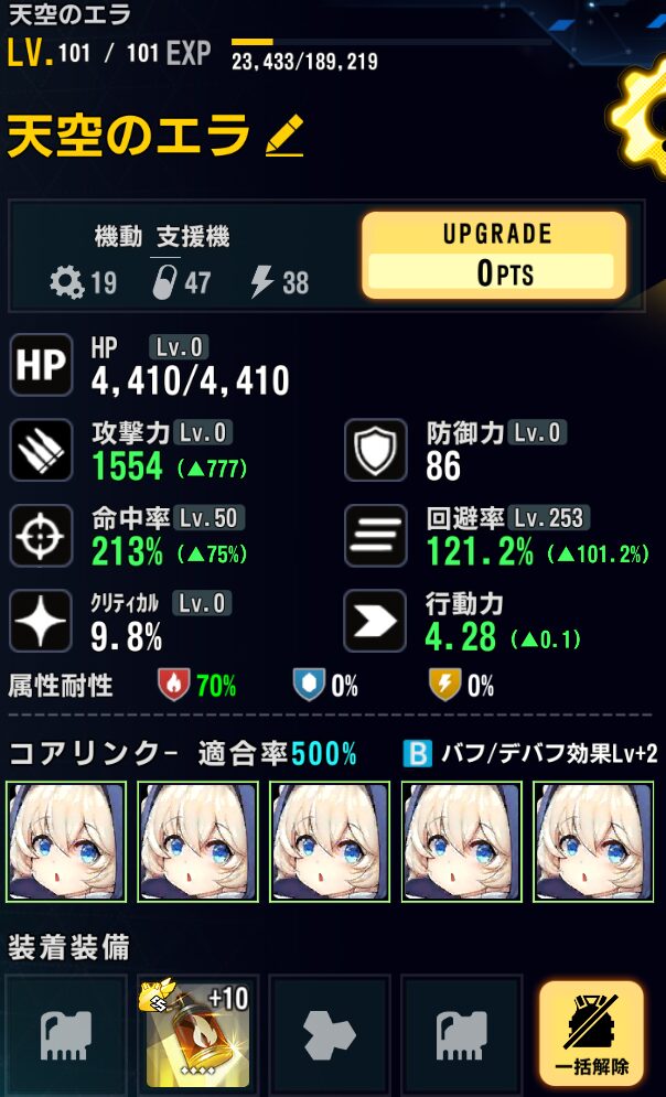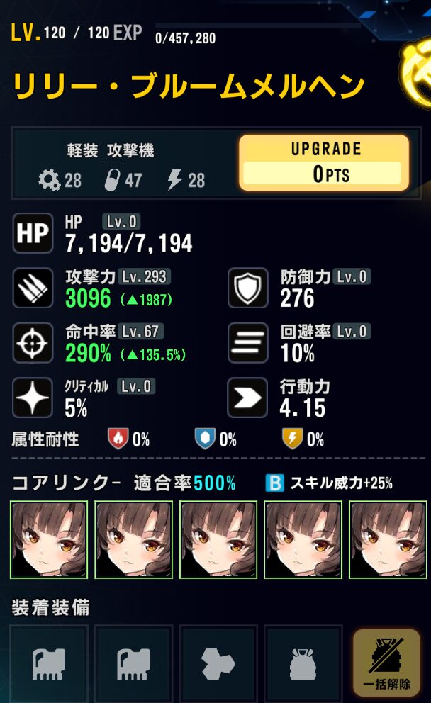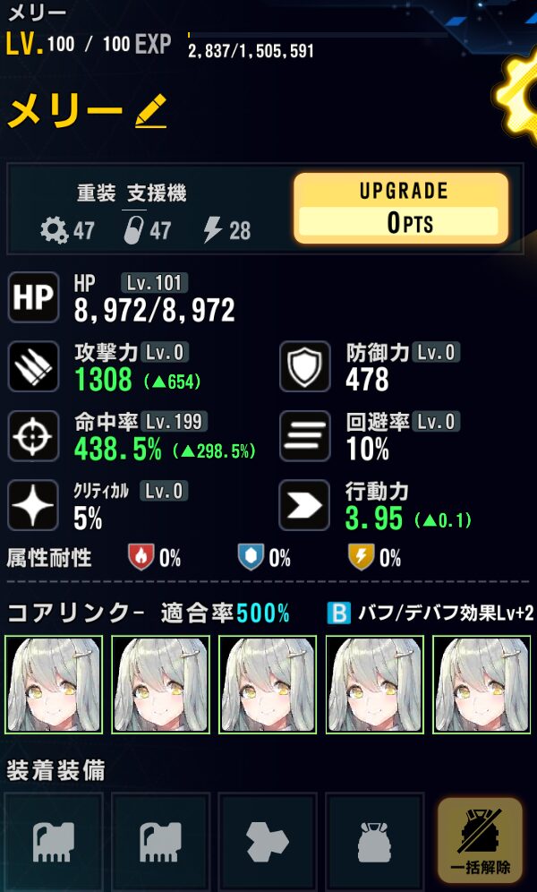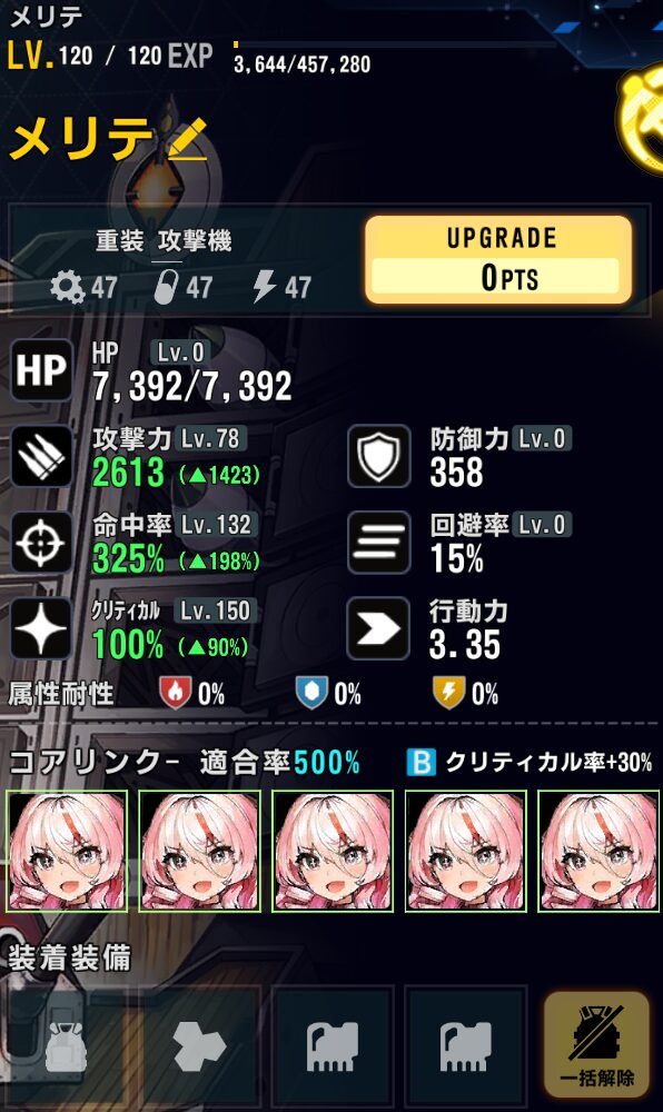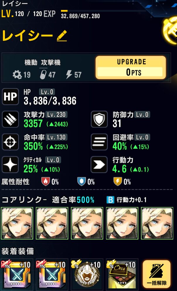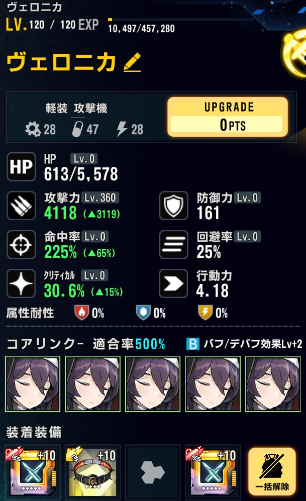 装備:BR突撃回路×2、専用装備 ステータス:攻撃特化