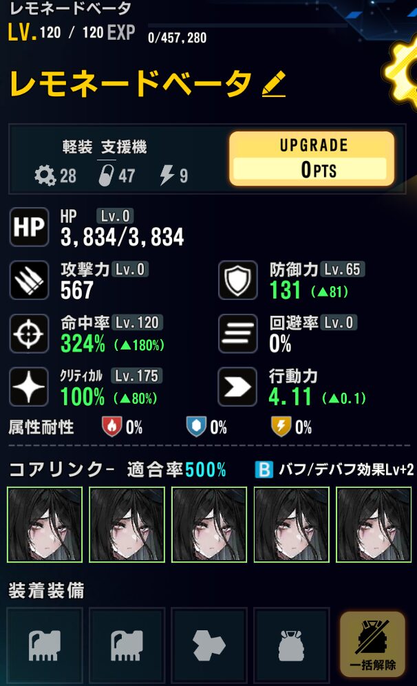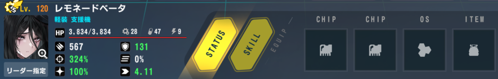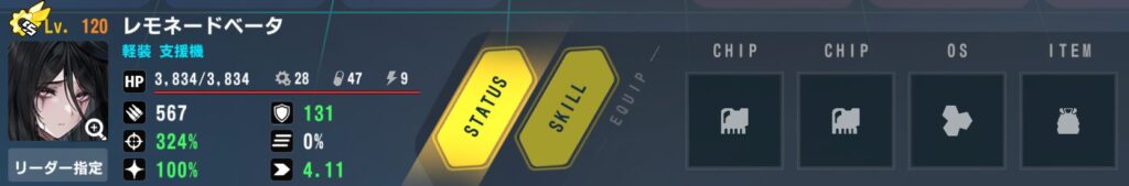 他のメンバー(レモネードベータ、エラ、ユサール)は火力/行動力をサポートする。