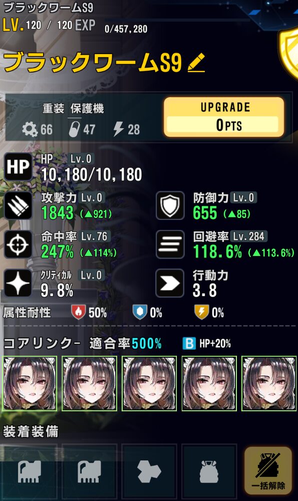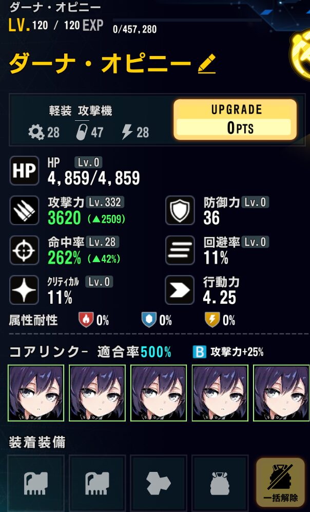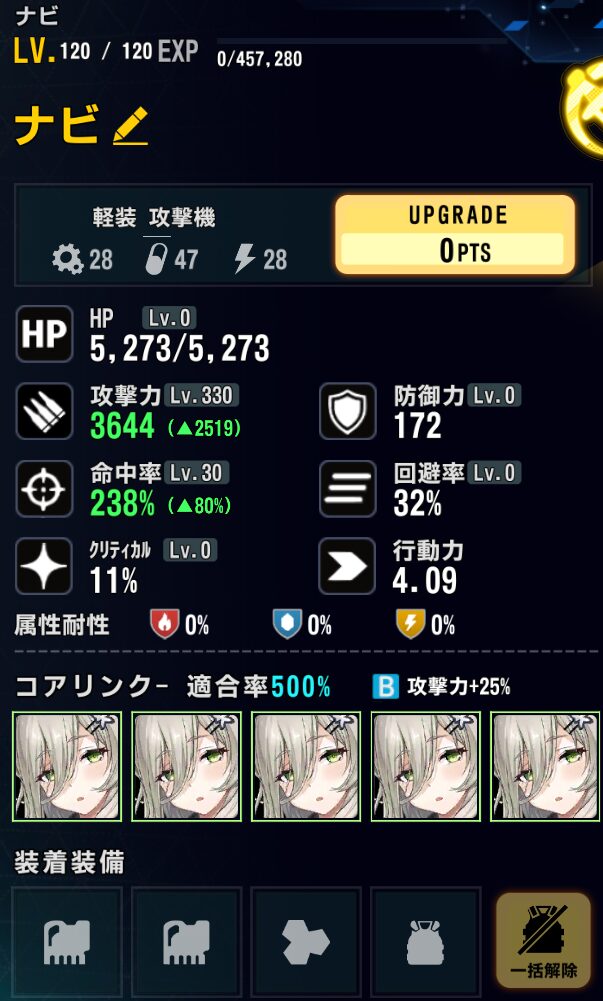 編成に軽装型1体以下にすると敵攻撃機に強化不可が付与される