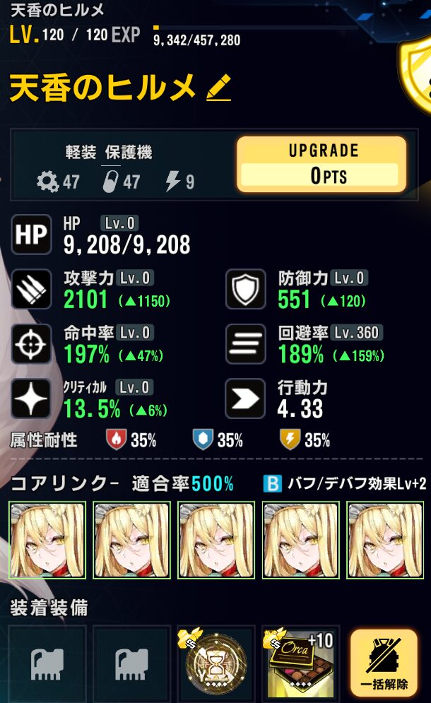 ヒルメ:好感度200or誓約 フルボ:バフデバフLv+2 装備:戦場リブートシステムガンマ、チョコ