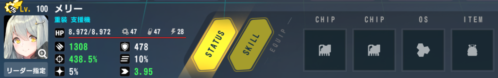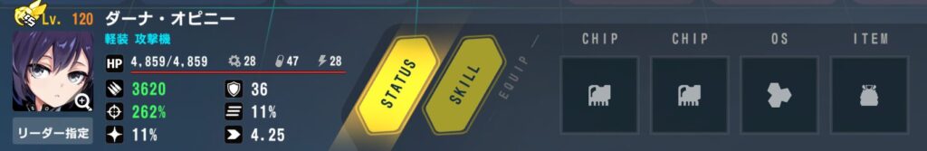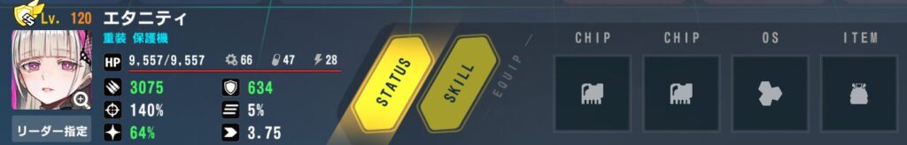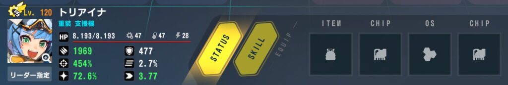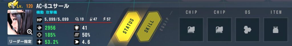 保護持ち相手を想定して掩襲型戦闘システムを装備。敵の回避率次第で命中は調整する。