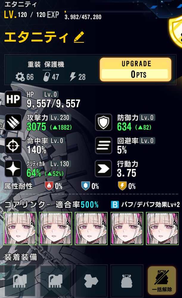 編成に重装型1体以下にすると、敵保護機にダメージ増加デバフが付与される。