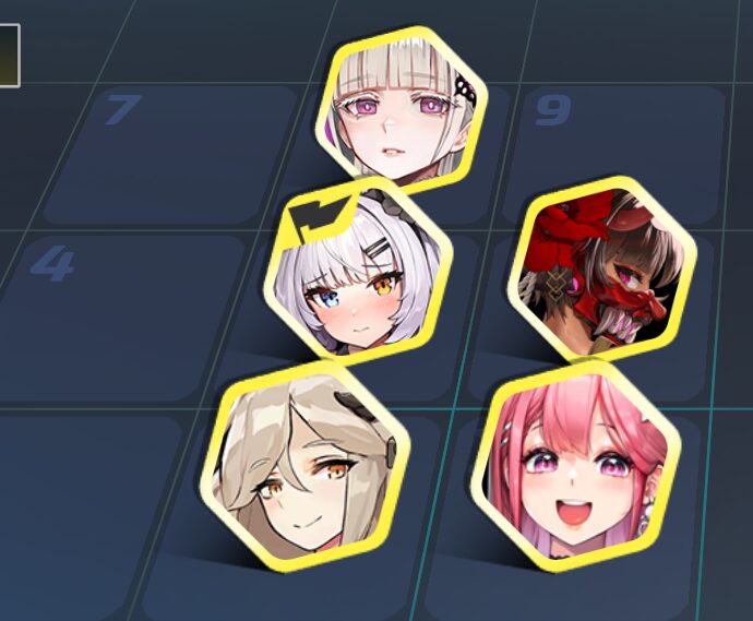 中破メイ:APバフ役。ユサールを抜いてメイを[8]に配置するとレイシーが先行1ラウンド目に動ける。