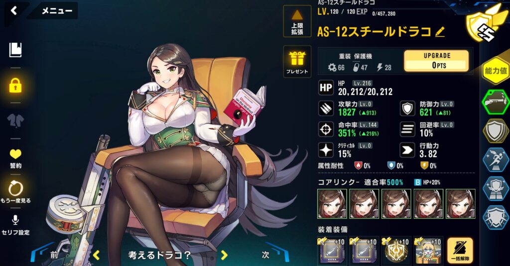 装備:出力強化回路×2、対重装型/軽装型戦闘システム、チョコ